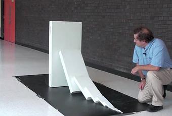 A domino can knock over another domino about 1.5x larger than itself. A chain of dominoes of increasing size makes a kind of mechanical chain reaction that starts with a tiny push and knocks down an impressively large domino.