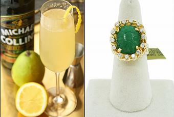 In the spirit of St. Patty’s Day approaching, we’re breaking out a pot of gold! The girls of Glitter Guide – notable the talented mixologist Victoria of VMac + Cheese – have concocted this golden drink. While we enjoy a glass of green beer as much as the next jeweler, we think this luxuriously unique cocktail is a little more our style. And we think it pairs perfectly with this gloriously green carved emerald, diamond and gold cocktail ring. With the luck of the Irish impending this Saturday, we’ll toast to finding this pot of gold (and emerald) at the end of your rainbow!