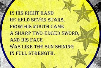 Then I turned to see the voice that was speaking to me, and on turning I saw seven golden lampstands, 13and in the midst of the lampstands one like a son of man, clothed with a long robe and with a golden sash around his chest. 14The hairs of his head were white, like white wool, like snow. His eyes were like a flame of fire, 15his feet were like burnished bronze, refined in a furnace, and his voice was like the roar of many waters. (Revelation 1:12-15).