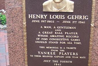 On July 6, 1941, the Yankees unveiled a center field monument dedicated to Lou Gehrig. The memorial serves as a tribute by his teammates to Gehrig, who died of amyotrophic lateral sclerosis (ALS) the month before.