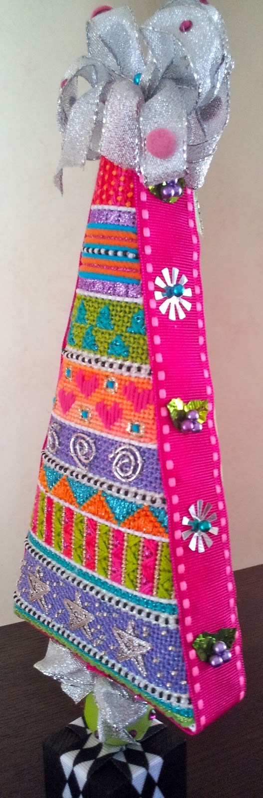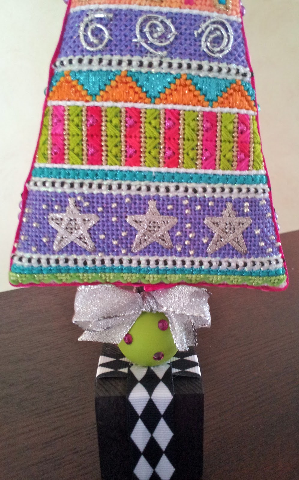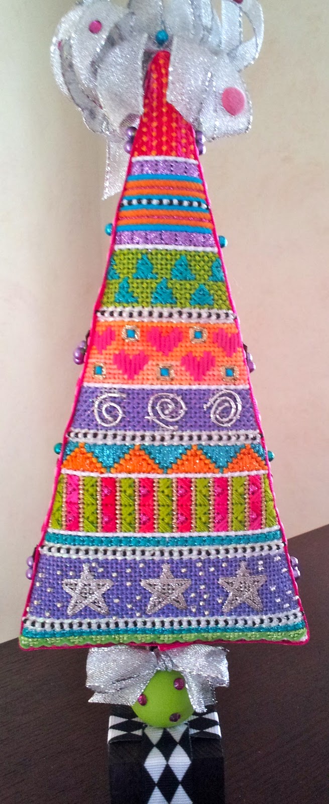 And here is yet another tree, this is my Winter Tree canvas that was featured in Needlepoint Now a while back. Great stitching is by Mary Powell and the terrific finishing is from Funda Scully. Great work both of you!
