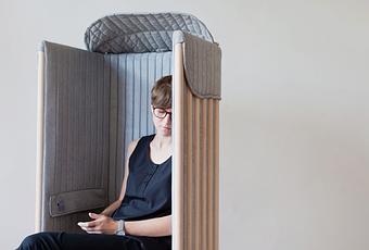 The Offline Chair by Agata Nowak, who recently completed her M.A. at the University of Fine Arts in Poznan, uses flexible fabric to allow users to signify when they're looking for privacy.