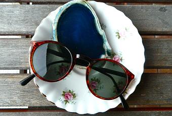 ( sliced geode that I snagged for 2 bucks, shabby chic gold trimmed dish for my rings, and some vintage circle sunnies. )
