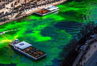 You’ve probably stood along the Riverwalk to catch a glimpse of the famous dyeing of the Chicago River for St. Patrick’s Day, but have you ever wondered what it looks like from a bird’s eye point of view?