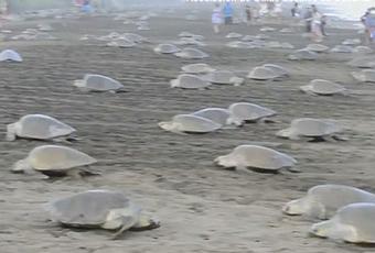 Thousands of sea turtles come ashore to lay their eggs on the coast of Costa Rica. The incredible scenes were filmed by local wildlife experts in north-western Guanacaste.