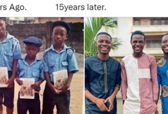 One of many three associates, Uncle Sarm took to Twitter to share a photograph of themselves as little boys alongside a current picture of them collectively.