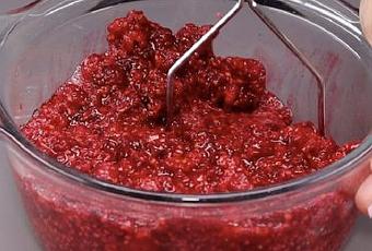 The raspberries and blackberries are lightly chopped. If you prefer a smooth jam without any lumps, you can use an immersion blender.