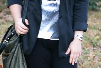 Jacket: Ann Taylor (similar) | Tee: eBay (DIY cut neck) | Pants: LOFT (similar) | Boots: DUO (similar) | silver cuff and necklace | Bag: Steven by Steve Madden | Lipstick: Revlon Just Bitten Kissable Balm Stain in RomanticToday is a tough day at work - big project today that has been causing me and many of my coworkers some stress. Will all turn out well, but we'll all be super excited when it's over. And speaking of which, this evening my friend Nicole and I are going to see Grace Potter and the Nocturnals at the 9:30 Club. I think this is my fifth or sixth time seeing her, and I know it will be a fun time. Just what I need after a hectic day, some girl time with Nicole (and Grace!), a couple cocktails, and some strength from Keef!