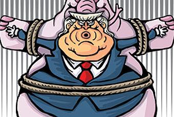 Tied To A LoserPolitical Cartoon is by Gary Huck at huckkonopackicartoons.com.