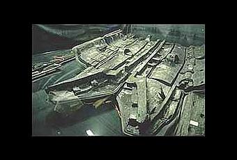 This wooden prehistoric boat, discovered in September 1992, is thought to be some 3,000 years old. The boat's excavation was an internationally important archaeological discovery. After seven years of research and conservation, the Dover Boat is back in Dover and proudly on display at the Dover Museum. [source DOVER BRONZE AGE BOAT]