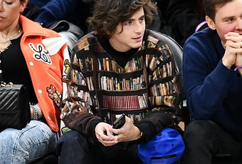 Timothée Chalamet sat courtside in a chunky crewneck that caught the eye. His choice to wear a book-covered sweater was surprising and memorable. While celebrities often dress to impress at games, Chalamet’s apparel stood out.