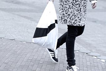 As from last week, even my shopping/grocery bag matches my every look (because everything in my wardrobe either is or goes with black and white). No more stupid orange Albert Heijn bags for me. It’s all in the details, I love it.