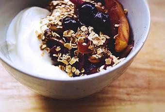 Caramelized Apples + Bluberries: Melt butter in a frying pan over medium heat, add apples, vanilla extract and honey and sauté for about 9-10 minutes. Add blueberries just a couple minutes before apples are about to be ready. Serve with yogurt and toasted oats!