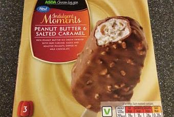 I had a hankering for some ice creams at Asda the other day, and a brief look at their Magnum-style offerings rewarded me with these fantastic sounding treats. Peanut butter ice cream is becoming a big thing nowadays, and I'm very glad it is. But Asda have combined this trend with another, throwing some salted caramel in for good measure.