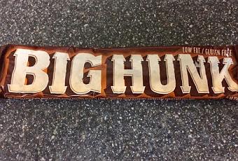 I can't say chowing down on a Big Hunk was on my wish list, but I found a bar for a reduced price, so of course I was going to have a go. This is a massive nougat bar, a snack food that is quite underrepresented in the UK. This one contains honey flavoured nougat, but is also packed with peanuts for good measure. Honey and nuts works, we know that, but nougat too?