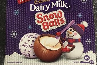 Cadbury are branching out lately, changing up their seasonal treats to suit a wide range of occasions. First we had Wini Eggs, then Ghooost Eggs, and now Egg 'n' Spoons have been tailored to fit the festive season, in the form of these Snow Balls. It's the same kind of formula as the Egg 'n' Spoon, a Cadbury chocolate ball filled with vanilla mousse.