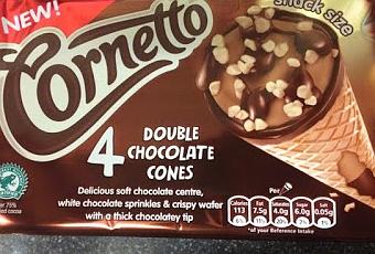 Last year I reviewed the selection of chocolates that Wall's brought out to draw those in who weren't particularly up for an ice cream. Well, the trend has continues this year, with some new flavours coming out. One is the caramel Magnum chocolates, and the other is these Cornetto cones, now sporting double chocolate. The vanilla ones last year were pretty alright, so I figured these were worth a shot. After all, more chocolate is better, right?