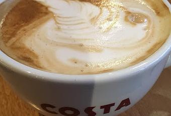 The festive drinks are out, and the coconut is in. Yes, carrying on the recent coconut craze, Costa have introduced a line of drinks containing coconut milk, adding a twist to a few classics. There's a coconut vanilla latte, a coconut mocha, and this coconut flat white. I went for the last one so I could get that pure coconut experience, to dip my feet in the coconut milk so to speak.