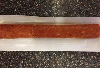 This is basically a stick of cheese, wrapped in pepperoni. so it's kind of like an inside out pizza, without the tomato sauce... or the dough... actually, it's nothing like an inside out pizza, and it's actually just like cheese wrapped in pepperoni, because that's what it is. So yes, it's simple, but it's effective. The pepperoni has a nice spicy kick to it, but it didn't make me paranoid that I smelled of cured meats afterwards, which is something I always wonder after polishing off a Pepperami. There's just enough of the meat to add a nice flavor and texture to the cheese waiting inside, which is lovely and smooth. It's somewhat creamier than your regular Cheesestring, which means every bite of this stick is a smooth, slightly spicy delight. These are very tasty and filling sticks, and great for a snack. I'll definitely be picking these up again.