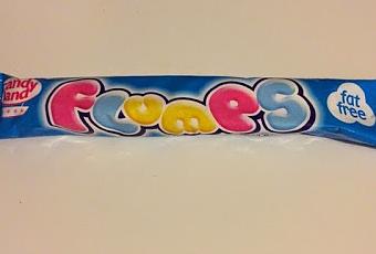 Once again I remain bored on a Friday night, with nothing new and exciting to stuff into my face, so I resorted to digging through the assorted box of snacks that the whole family have access to. Today I found a Flump. Can you call it a Flump? The packet says "Flumps", but there's only one piece in there. Is Flumps the singular? Nah, I don't buy that. If you're eating one, it must just be a Flump.
