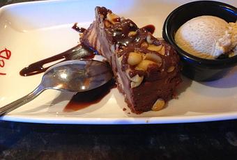 First things first, this dessert looks awesome. A chocolatey, peanut butter cheesecake wedge, drizzled in chocolate, with more peanuts thrown on for good measure. If that wasn't enough, you also get a scoop of peanut butter ice cream on the side, because the only thing better than peanut butter is more peanut butter.
