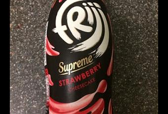 Ah, Frijj Supreme, they're like Frijj, but with fancier flavours. I've tried out some of the other Supreme flavours, and found them to be pretty enjoyable. The raspberry & white chocolate is tasty, and the sticky toffee pudding is pretty authentic, so I was excited to see a new strawberry cheesecake variety was coming out. Unfortunately I couldn't find it for a while, but Asda had my back today and I managed to grab a bottle. I couldn't wait to drink me some cheesecake.