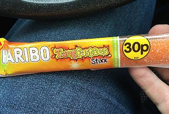 Just a quick little review of this interesting sweet I picked up in Poundstretcher. It's a combination between Tangfastics and a cable, which sounded like a pretty good amalgamation. Looks like it only came in an orange flavour, and it's pretty good. The outer layer is nice and fizzy, pretty much like a big elongated Tangfastic. The inside is a pretty generous orange flavor creme, which is creamy enough, but the orange flavouring means it's a little on the sickly side. Perhaps with a more traditional white filling I'd be more on board with this. It's good though, and I'd like to see it available in other colours. Like red and purple. Mmm.