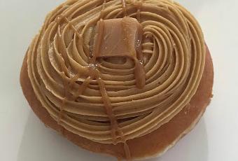 Krispy Kreme have brought out some new caramel based flavours, and they've gone all the way with this one. It's filled with salted caramel sauce, topped with caramel frosting, a caramel cube and a caramel drizzle. But is there such things as too much caramel? Well, yes, when you're trying to differentiate between different types, it's a bit of a muddle. The salt in the filling is lost when trying to compete with the three other caramel elements going on at the same time, and despite everything going on, this just tastes like a regular old caramel filled donut. There are far better Krispy Kreme choices that incorporate many flavours, so while this one is quite good, it didn't blow me away.