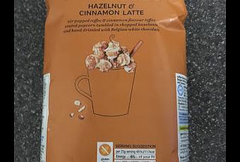 This is some pretty decadent popcorn, there's a lot going on here. Let's start with the cinnamon and coffee, which are the flavours given to the popcorn, which is also toffee coated. The coffee is quite noticeable, a slight bitter taste underneath the sweetness, with a little hint of cinnamon spice as well. The toffee does tend to overwhelm it, but the flavours are there. This stuff is also covered with white chocolate, which lends a creaminess to that coffee taste and helps to round out the flavour, and it's also rolled in hazelnut pieces, which tops it all off with a sweet, nutty finish. With all the stuff going on in the outer layers, the flavor of the popcorn itself isn't as strong as it should be, but overall this is a very nice bag of popcorn. I'll have to try out the others soon in case they get reduced to clear.