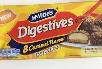 McVitie's have been churning out a few interesting products lately, and now it seems they want to grab a share of the teacake market. Now, I probably couldn't resist a caramel teacake, let alone one that promises a Digestives base, so as soon a I saw these they went straight in the trolley. They consist of a caramel flavoured mallow on a Digestives base, covered in chocolate and topped with caramel flavoured sprinkles.
