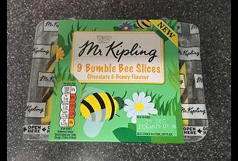 Amidst the onslaught of Christmas themed cakes that Mr. Kipling likes to pump out at this time of year, I managed to find a pack of cake slices that I haven't seen around before, despite them apparently having been out for months. My local Tesco is a bit slow off the bat apparently, as these Bumble Bee Slices are much better suited for the warmer months. The bee reference is two-fold, one because they're honey flavoured, and the other because they're also chocolatey, resulting in stripes. Clever, eh?