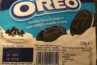 Oreo's a big thing over here nowadays. Oreo cheesecakes, Oreo milkshakes, as well as the many varieties of cookies lining the shelves. Now it seems they want to move into the yoghurt market, with this split pot, featuring a vanilla yoghurt with a helping of Oreo crumb. Simple idea, but it's a good one.