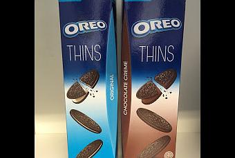 Oreo Thins. They're like Oreos, right, but they're thin. I mean, I like a new product as much as the next guy, but sometimes I just pause to wonder whether some things are necessary. What is the purpose of a thin Oreo? I assume they're jumping on that diet bandwagon, and offering a way for you to get your Oreo fix with less calories. That's fair enough, but let's look at how they're packaged. Your regular Oreo snack pack contains two regular sized Oreos. Not that I agree with it, but it's apparently a portion. Those two Oreos contain a total of 105 calories. Now let's turn to the Thins. A portion of Thins is four cookies, which total 147 calories. More calories, you see? More baffling still, these are bundled up into two separate foil packets of eight cookies each, so what's the motivation to stop at just four?