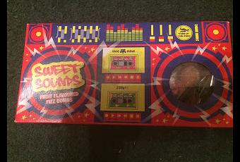 Christmas is over, as well as the weekend, so the shops are open like normal again (except for the end of this week of course). So I popped into Poundland today on the hunt for something interesting. Sadly, there wasn't much on offer, but my eye was certainly drawn to this vibrant boombox style box of sweets. These are Sweet Sounds, and apparently they are fruit flavoured fizz bombs. The music references are certainly piled on heavily on the exterior, with the repeating catchphrase "Turn Up The Fizz", but in reality I fail to see are related to audio in any way.