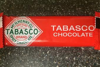 I've been finding a few Tabasco flavoured things lately, from jelly beans to milkshakes (actually, just those two). I've spied this Tabasco chocolate in amongst the American food on offer at Tesco, but the other day was the first time I saw it on offer, so I figured I'd give it a go. It's Tabasco flavoured chocolate, basically. Dark chocolate, which I figured from the get go, so I wasn't quite sure what I'd make of it. But hey, worth a try, right?