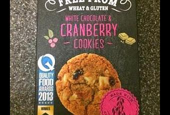 While I've certainly seen an increase in the number of gluten free foods available over the last year or so, I've never dabbled, since I don't have a sensitivity to gluten. But Tesco sent me some vouchers so I could try out some of their Free From range, so I scanned the shelves for some goodies. Cookies are as good a place to start as any, so I grabbed a pack of these white chocolate and cranberry ones.