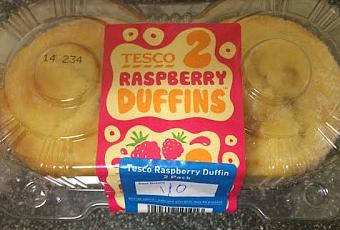 Ah, the Duffin, my first foray into strange bakery combinations when I had one at Starbucks a while back. Now it seems Tesco are trying to get in on the action with their own raspberry Duffins. They're easier on the wallet, at just £2 for a pack of two, but do they coffee giant's not-perfect-but-still-pretty-good offering?