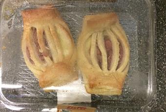 Tesco have updated their baked goods again, just in time for the warmer months, and nothing says "summer" like... lantern shaped pastries? Well, I guess you'd have lanterns set up in your garden on a nice warm evening, but I figured a lantern shape would be more suited to Halloween. Who knows, maybe this is just the best shape they could come up with. But let's focus on what's inside, a mixture of rhubarb and custard, which is a quintessentially British thing, to be sure.