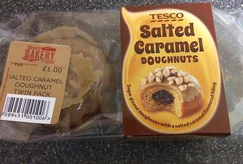 Having reviewed the red velvet doughnuts from Tesco a few weeks ago, I thought it wouldn't be long until I went back and bought the salted caramel doughnuts that were sitting right next to them. Well, today I finally did, and I was wondering why it took me so long to pick them up. Doughnuts are great, salted caramel is great, so both together must be amazing, right?