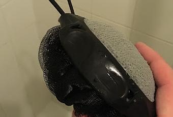 Well, this is definitely different from the brightly coloured puffs I normally opt for in the shower. Not in a good way, but different. The black puffy bit is slightly soft, but also quite coarse, and the thick chunk of rubber on the other side doesn't allow it much leeway to lather up effectively. I didn't even try the brillo pad looking side, I can only assume that's for when you've grown too manly to have a firmly established outer layer of skin, and want to prove your masculinity by scratching it all off. I'm not much of a fan of this, I guess it will become a little less coarse as I use it more, but I wouldn't recommend it for washing any men with, especially if washing men is a regular pastime.