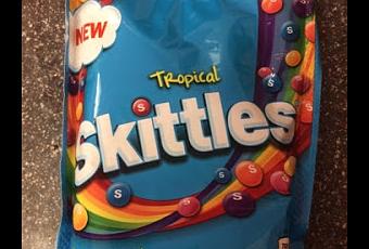 It's not often you find a new variety of Skittles on the shelves at Tesco, but apparently the Skittles market is opening up, as this is the second new variety to come out in as many months after the Darkside arrived in time for Halloween. This time we're transported from the darkness to a tropical paradise. Well, maybe not paradise, I haven't told you how they taste yet.