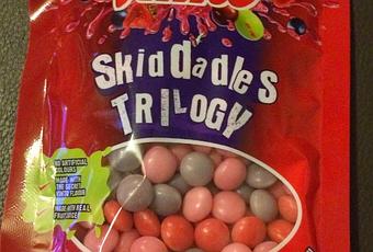I reviewed the original Skiddadles a couple of years ago, and lamented the fact that they only came in one flavor. Well, someone may have listened to me, or come to the same conclusion themselves, as now you can pick up Skiddadles in a "trilogy" of flavours (a very weird term to apply to sweets). These little chewy delights come in original (blackcurrant-like), cherry and strawberry. That's fine by me, as the red and purple flavours are always my favourites.