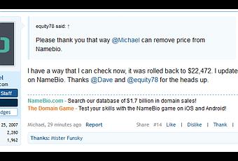 I posted about this on Namepros and Michael Sumner from Namebio posted he has a way to see the updated price and it was $22,472.