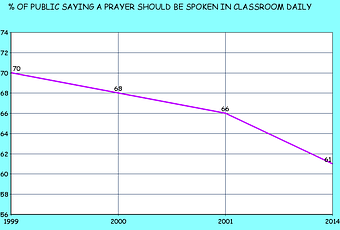I guess there is some good and some bad in this survey. It is good that the percentage of people who want to toss out the Constitution (at least the First Amendment that guarantees freedom of religion) so they can force their religion on defenseless school children has shrunk over the last 15 years -- from 70% in 1999 to 61% in 2014. That's a fairly significant drop.
