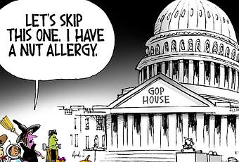 Too Many Nuts In That Building!Political Cartoon is by Walt Handelsman in the New Orleans Times-Picayune.