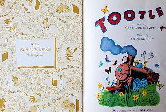 TOOTLE is written by Gertrude Crampton and illustrated by Tibor Gergely. It was first published in 1946 by Western Publishing Company. The copy I found at the street fair was the 24th printing in 1969. The book is still available on Amazon.