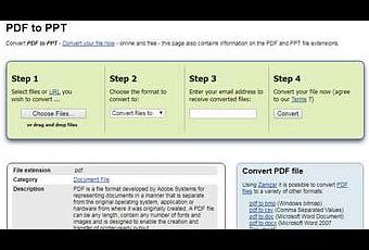 Not only pdf to ppt conversion, but there are also about 1200 different conversions, like Video, Audio, Music, eBooks, Image, CAD, etc. that Zamzar supports seamlessly.