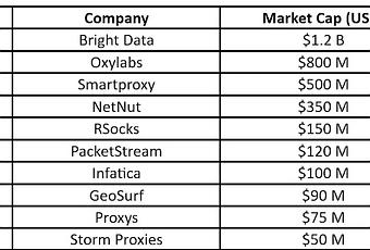 Below is a detailed table showcasing the ten largest proxy providers by market cap. Each figure represents the most recent market or funding valuation, rounded to the nearest million.Choosing the Right Proxy Partner for Your Needs