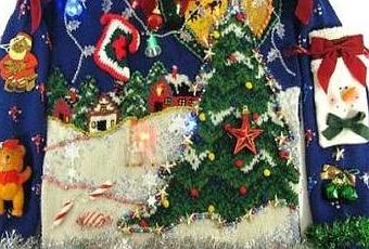 Any jumper with a Christmas tree on it bigger than a few inches is an instant eye-sour. But what about one that is the length of the jumper, with lights and what looks like a pinny on the bottom!? Well that one makes this list.