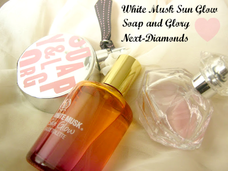 The second one is my favorite and it's by The Body Shop. Its their white musk-sun glow eau de toilette and it smells gorgeous! This has to be the perfect summer fragrance. It has a blend of peony, soft peach notes and some zesty lemon. It's very feminine and very floral hence being my favorite. It's just very fresh, elegant and musky but not overwhelming. It stays on me for a very long time too.How pretty is the bottle?And last but trust me not the least is a fragrance from Next. Its called Diamonds RRP £10. My sister got this as a present last year and I loved it so got me one. I looked up on the website and they say that it's a very floral fragrance with fresh fruit nectars and crystalline musk and I have too agree. It beautiful. And I've heard that this is a dupe for Miss Dior Original (Miss Dior Cherie) to which I partially agree. I love that its pink! It's actually a lot darker as a pink than in the image Looks very pretty. It doesn't stay on for too long but for the price it's worth it! Hope you guys enjoyed this blogpost!